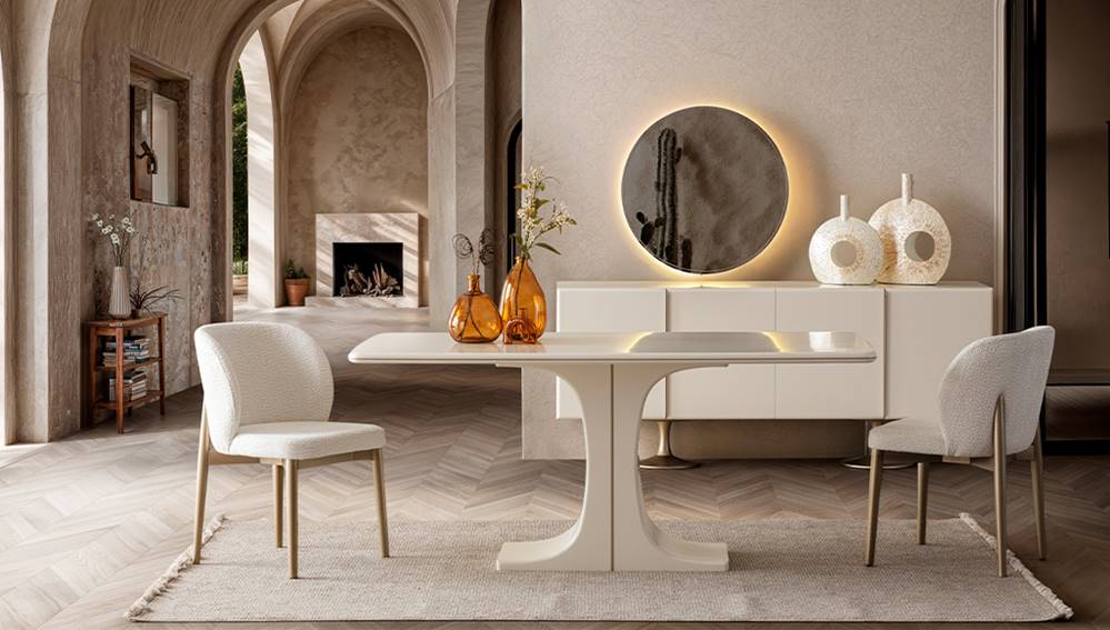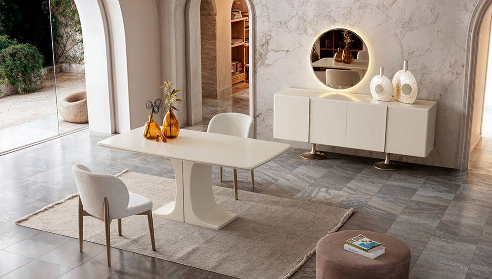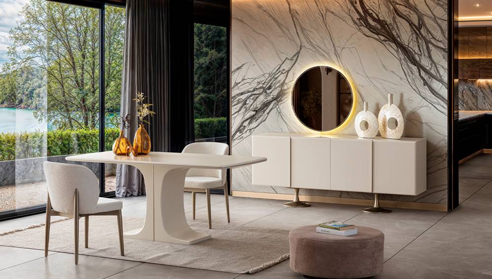 Akasya yemek odası: Aynalı konsol, masa ve 6 sandalye