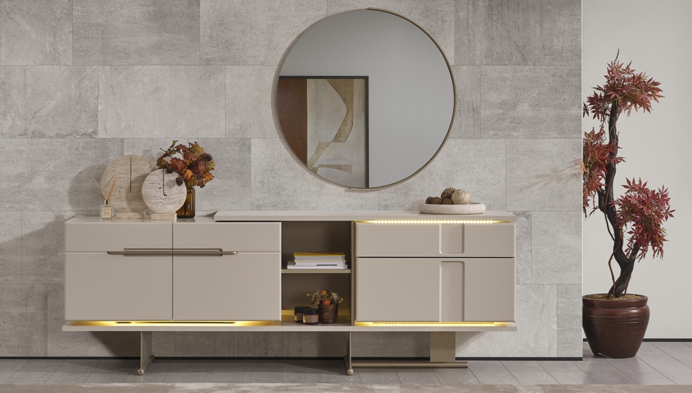 Yemek odası takımı Aynalı Konsol, Açılır Masa, ve 6 sandalye olarak fiyatlandırılmıştır.